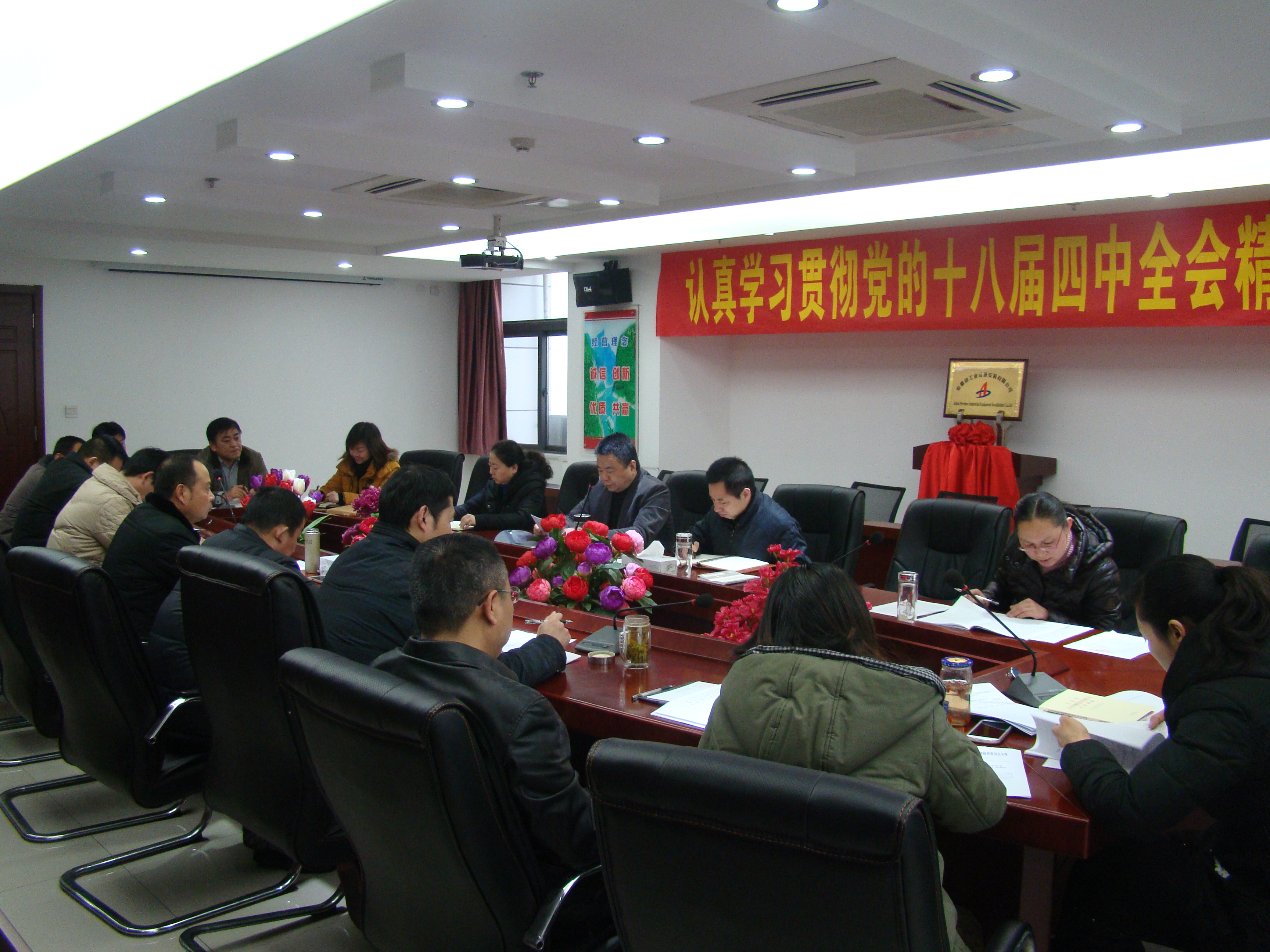 一元復(fù)始,萬象更新。1月26日上午,公司黨委召開了2015年一季度黨群工作例會(huì),集中學(xué)習(xí)貫徹了集團(tuán)公司2015年工作會(huì)議精神。公司黨委書記鄭平,黨委副書記、紀(jì)委書記胡六中,工會(huì)主席李原以及所屬各基層黨支部書記、工會(huì)主席和黨群部門有關(guān)人員參加了會(huì)議。會(huì)議由胡六中書記主持。
