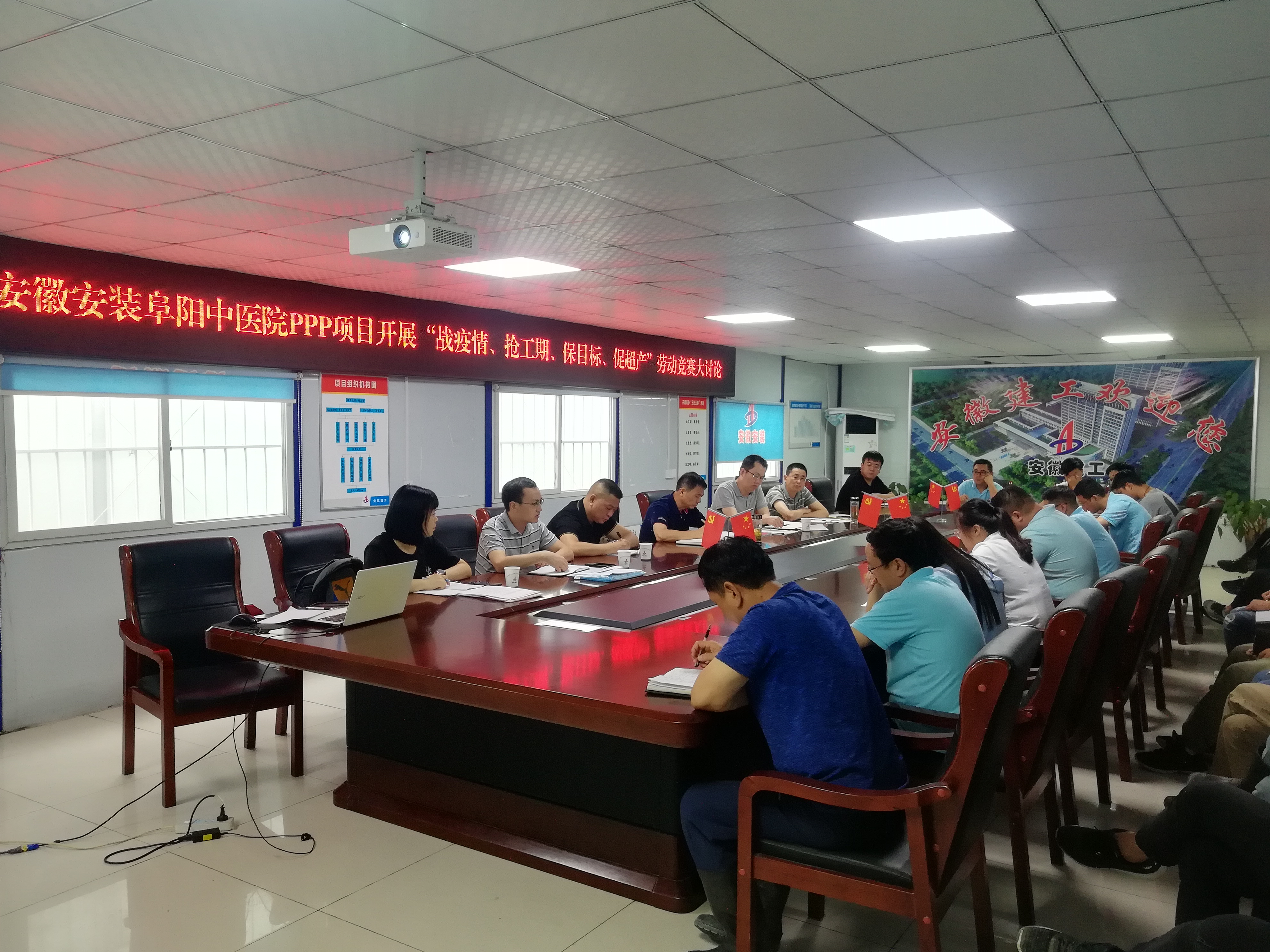 為認(rèn)真貫徹公司“戰(zhàn)疫情、搶工期、保目標(biāo)、促超產(chǎn)”勞動競賽活動精神,7月12日下午,公司紀(jì)委書記、工會主席李寬旭,副總經(jīng)理王軍一行在阜陽潁東區(qū)中醫(yī)院項目部會議室,組織開展“戰(zhàn)疫情、搶工期、保目標(biāo)、促超產(chǎn)”勞動競賽大討論,分公司領(lǐng)導(dǎo)班子成員、項目部全體人員30余人參加了會議,會議由李寬旭主持。