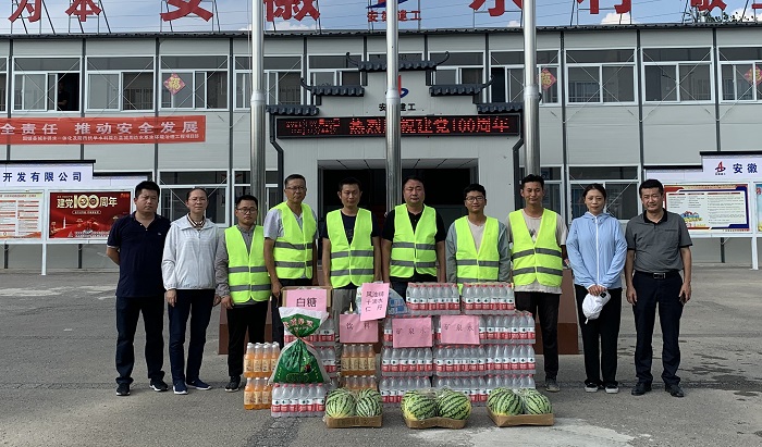 為做好高溫天氣下項目施工防暑降溫工作,切實保障項目一線職工的安全健康,確保安全生產(chǎn)工作順利展開,7月15日以來合肥分公司領導班子成員分別前往宿州新宇藥業(yè)、靈璧迎賓大道、固鎮(zhèn)三八河景觀工程、潛山高鐵站前廣場等各在建項目現(xiàn)場,開展夏日“送清涼”慰問活動,為現(xiàn)場一線工作人員送去防暑降溫慰問物資,并對酷暑天氣仍然堅守在一線施工作業(yè)人員表示親切的關心和問候。