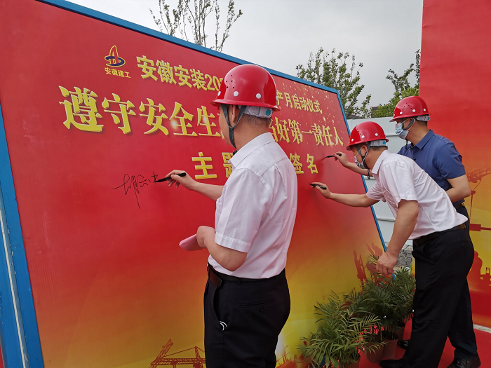 在全國第21個“安全生產(chǎn)月”活動到來之際,5月30日上午,安徽安裝公司2022年“安全生產(chǎn)月”啟動儀式在年配套1000萬臺新能源汽車及年產(chǎn)2億臺制冷空調(diào)壓縮機關鍵性能件制造基地項目舉行。公司黨委書記、董事長胡六中,紀委書記、工會主席李楊,副總經(jīng)理趙伯平,總工程師吳繼成及機關各部門、各分公司代表參加了本次活動。