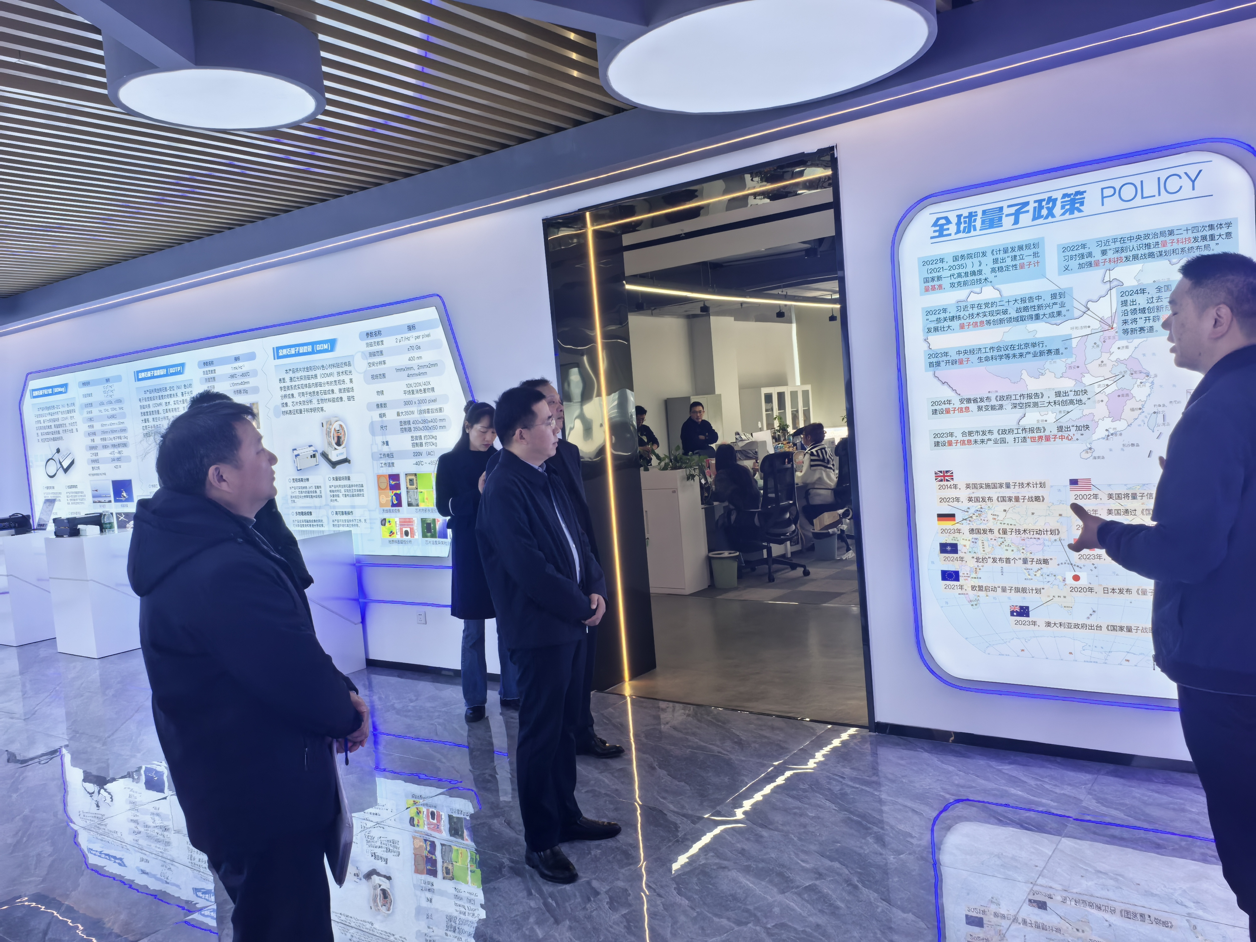 隨后,調(diào)研團(tuán)隊(duì)分別走訪國盛量子科技有限公司、拓航科技有限公司,與國盛量子科技有限公司副總裁貢趙軍、生產(chǎn)總監(jiān)陳凱,拓航科技有限公司總經(jīng)理方磊、市場(chǎng)開發(fā)總監(jiān)倪娜娜等進(jìn)行深入交流。圍繞無人機(jī)大數(shù)據(jù)及人工智能的行業(yè)應(yīng)用、量子傳感技術(shù)賦能工業(yè)測(cè)量等關(guān)鍵領(lǐng)域,進(jìn)行面對(duì)面深入溝通。
